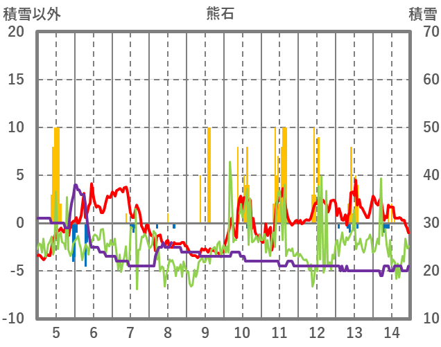 | 14 | -0.8 | 0 | WNW/1.2 | 60 | 30 | 0 | |