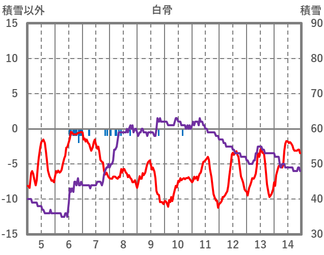 | 日 | 時 | 気温 | 降水 | 風向/風速 | 日照 | 積雪 | 降雪 |