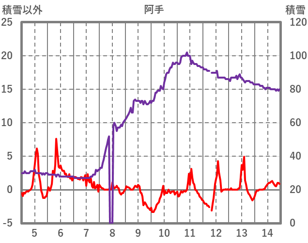 | 日 | 時 | 気温 | 降水 | 風向/風速 | 日照 | 積雪 | 降雪 |