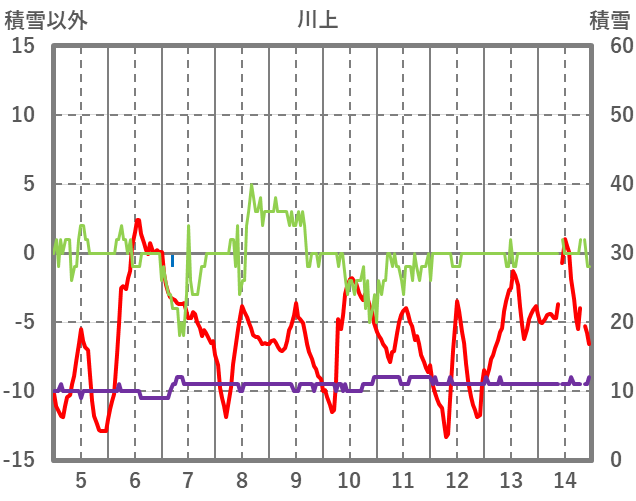 | 日 | 時 | 気温 | 降水 | 風向/風速 | 日照 | 積雪 | 降雪 |