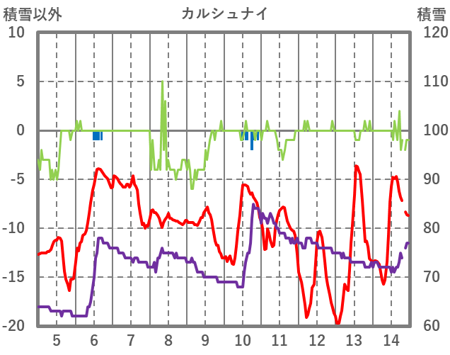 | 日 | 時 | 気温 | 降水 | 風向/風速 | 日照 | 積雪 | 降雪 |
