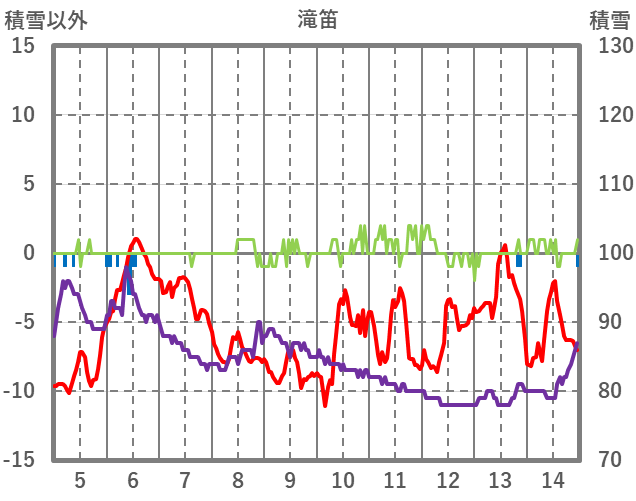 | 日 | 時 | 気温 | 降水 | 風向/風速 | 日照 | 積雪 | 降雪 |