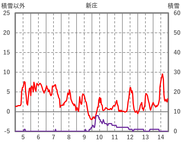 | 日 | 時 | 気温 | 降水 | 風向/風速 | 日照 | 積雪 | 降雪 |
