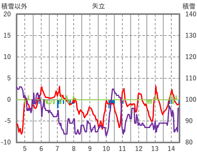 | 日 | 時 | 気温 | 降水 | 風向/風速 | 日照 | 積雪 | 降雪 |
