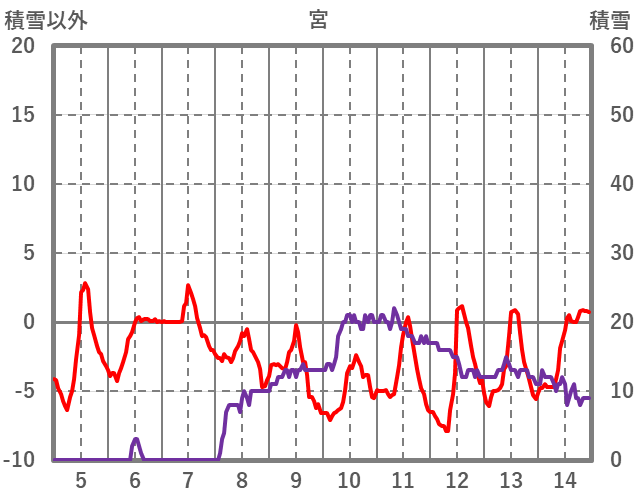 | 日 | 時 | 気温 | 降水 | 風向/風速 | 日照 | 積雪 | 降雪 |
