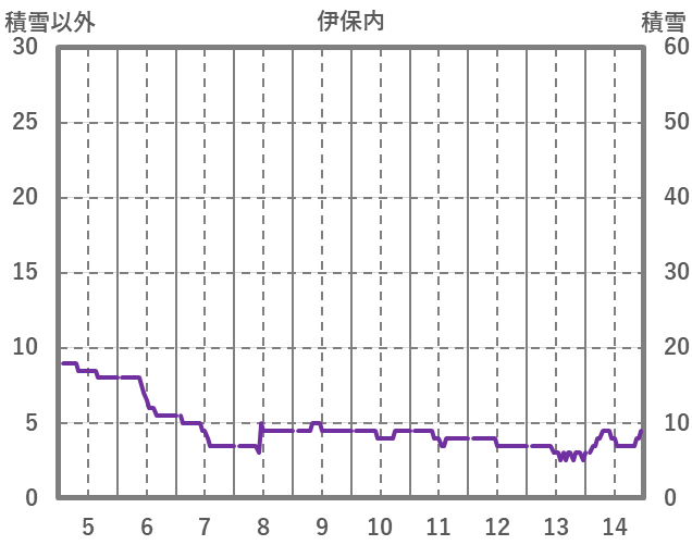 | 日 | 時 | 気温 | 降水 | 風向/風速 | 日照 | 積雪 | 降雪 |
