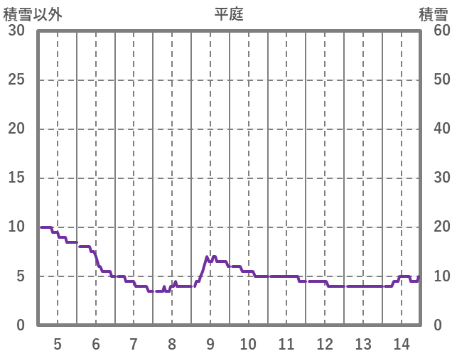 | 日 | 時 | 気温 | 降水 | 風向/風速 | 日照 | 積雪 | 降雪 |