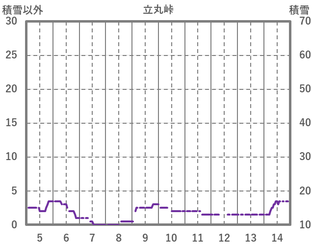 | 日 | 時 | 気温 | 降水 | 風向/風速 | 日照 | 積雪 | 降雪 |