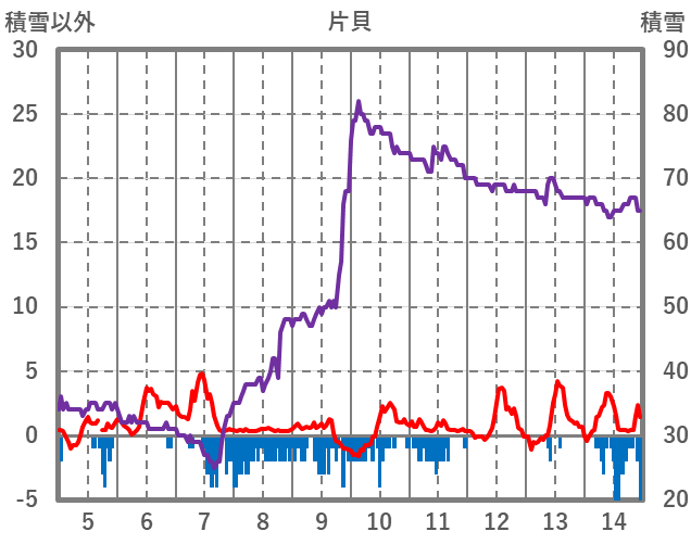 | 日 | 時 | 気温 | 降水 | 風向/風速 | 日照 | 積雪 | 降雪 |