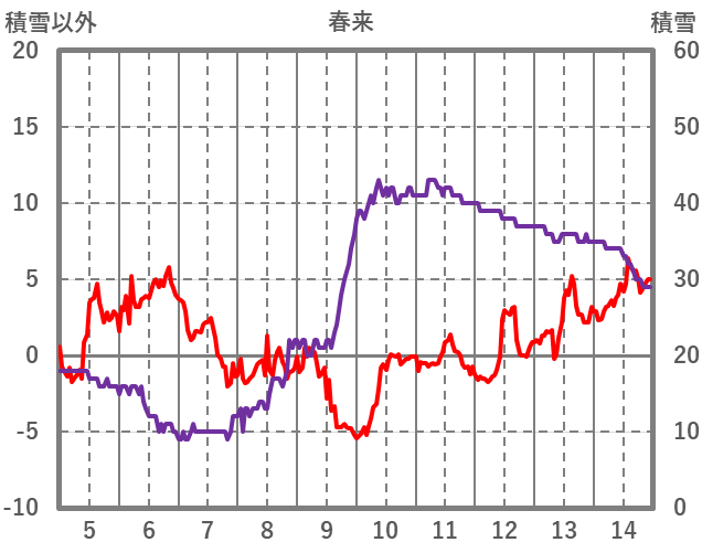 | 日 | 時 | 気温 | 降水 | 風向/風速 | 日照 | 積雪 | 降雪 |