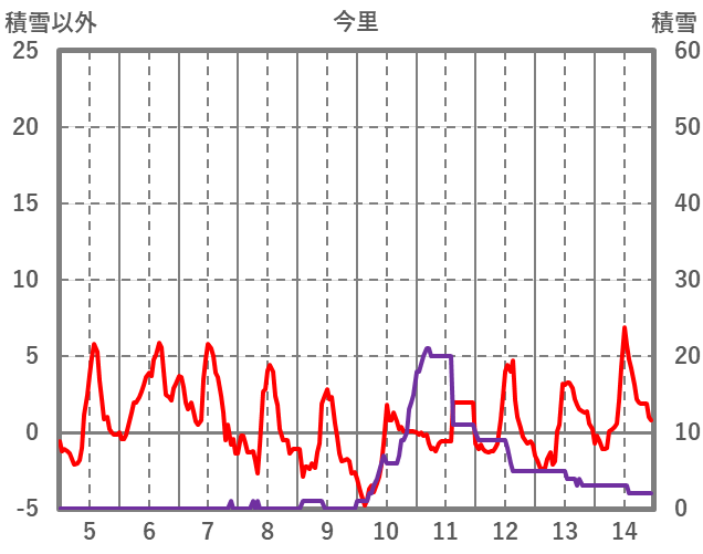 | 日 | 時 | 気温 | 降水 | 風向/風速 | 日照 | 積雪 | 降雪 |