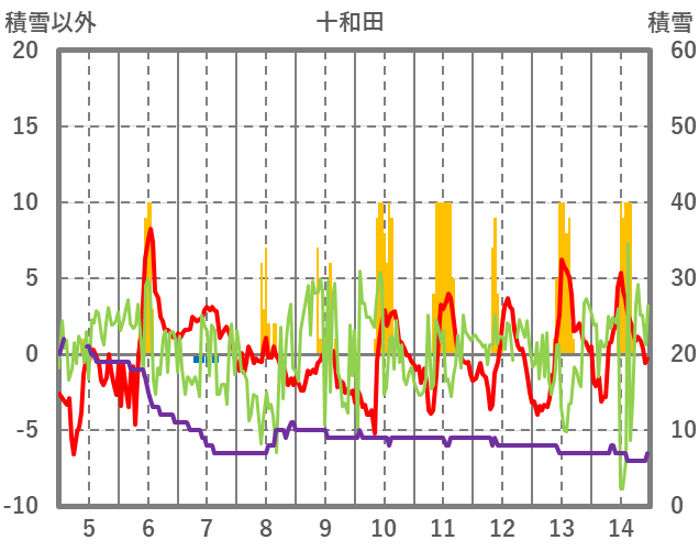 | 日 | 時 | 気温 | 降水 | 風向/風速 | 日照 | 積雪 | 降雪 |