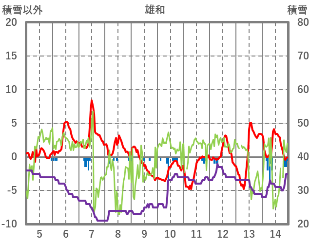 | 日 | 時 | 気温 | 降水 | 風向/風速 | 日照 | 積雪 | 降雪 |