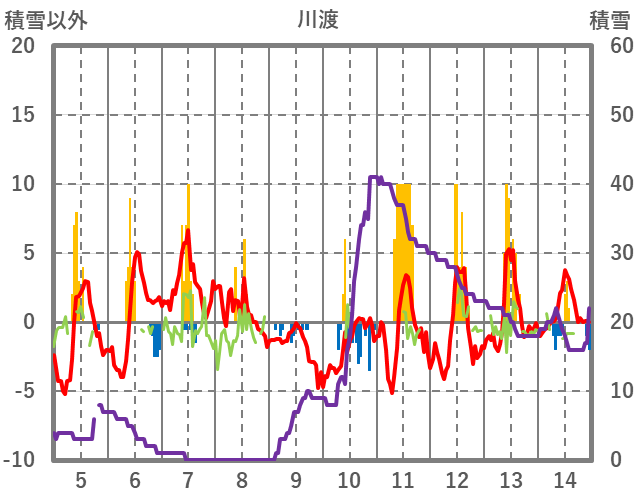 | 日 | 時 | 気温 | 降水 | 風向/風速 | 日照 | 積雪 | 降雪 |