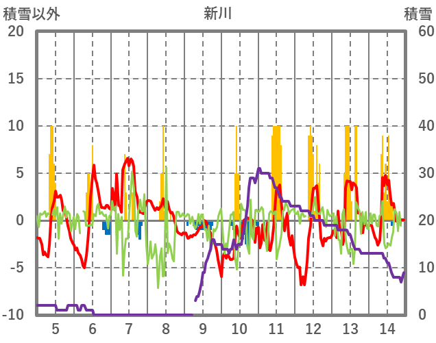 | 日 | 時 | 気温 | 降水 | 風向/風速 | 日照 | 積雪 | 降雪 |