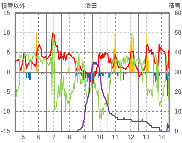 | 日 | 時 | 気温 | 降水 | 風向/風速 | 日照 | 積雪 | 降雪 |