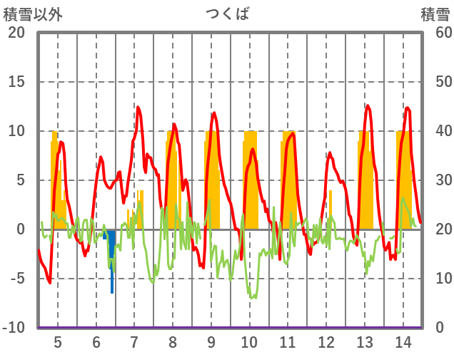 | 日 | 時 | 気温 | 降水 | 風向/風速 | 日照 | 積雪 | 降雪 |