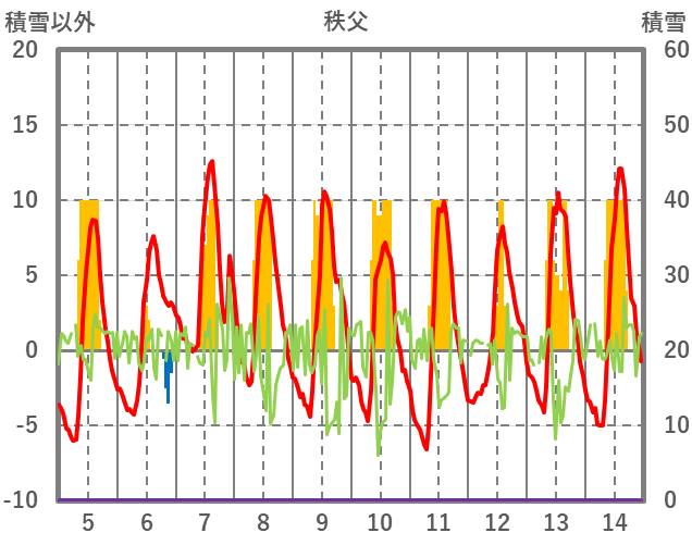 | 日 | 時 | 気温 | 降水 | 風向/風速 | 日照 | 積雪 | 降雪 |