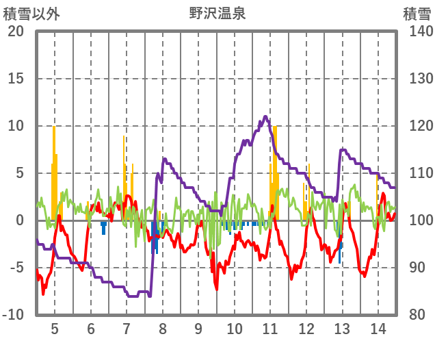 | 日 | 時 | 気温 | 降水 | 風向/風速 | 日照 | 積雪 | 降雪 |