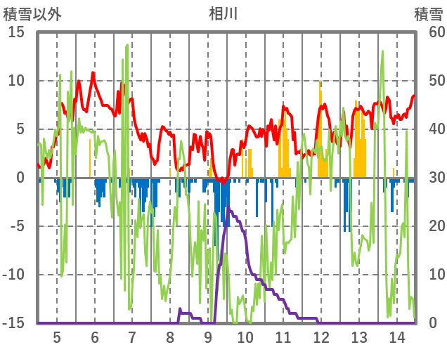 | 日 | 時 | 気温 | 降水 | 風向/風速 | 日照 | 積雪 | 降雪 |