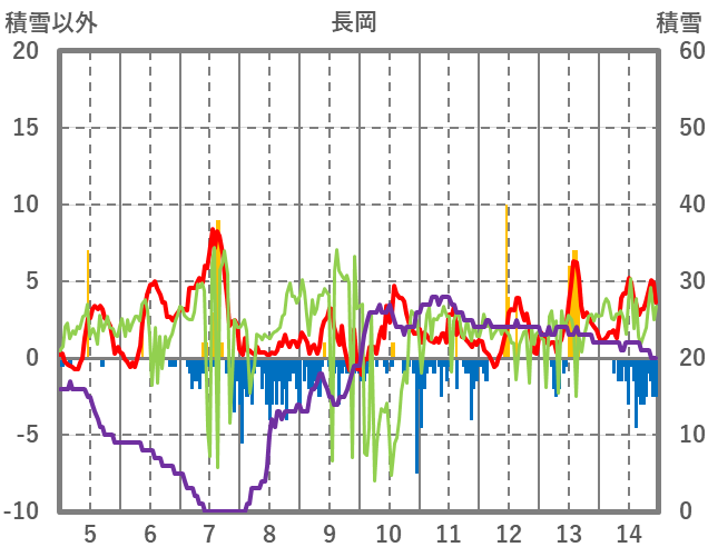 | 日 | 時 | 気温 | 降水 | 風向/風速 | 日照 | 積雪 | 降雪 |