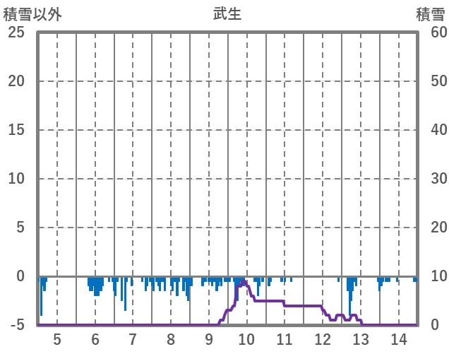 | 日 | 時 | 気温 | 降水 | 風向/風速 | 日照 | 積雪 | 降雪 |