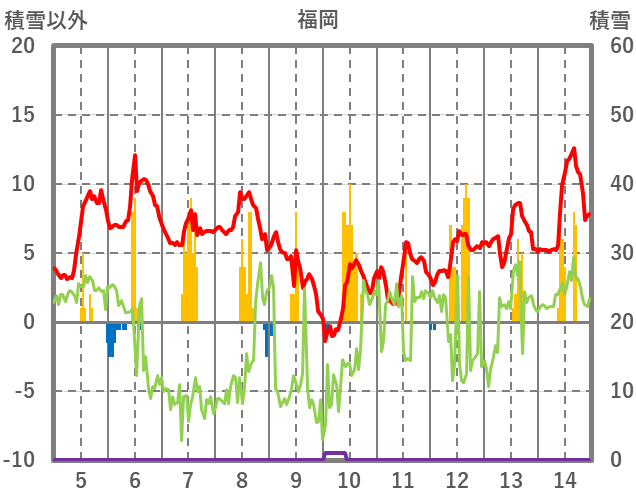| 日 | 時 | 気温 | 降水 | 風向/風速 | 日照 | 積雪 | 降雪 |