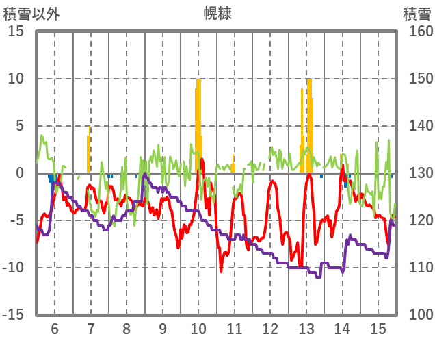 | 日 | 時 | 気温 | 降水 | 風向/風速 | 日照 | 積雪 | 降雪 |