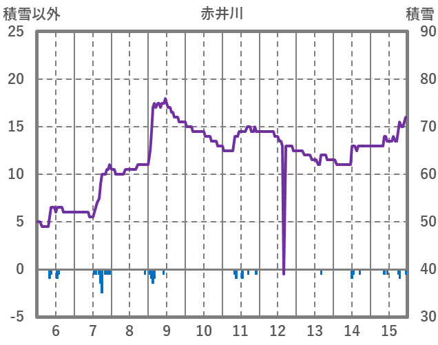 | 日 | 時 | 気温 | 降水 | 風向/風速 | 日照 | 積雪 | 降雪 |