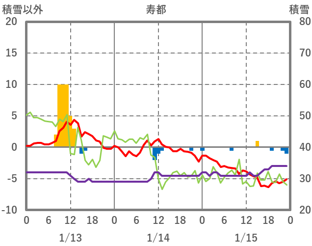 | 日 | 時 | 気温 | 降水 | 風向/風速 | 日照 | 積雪 | 降雪 |