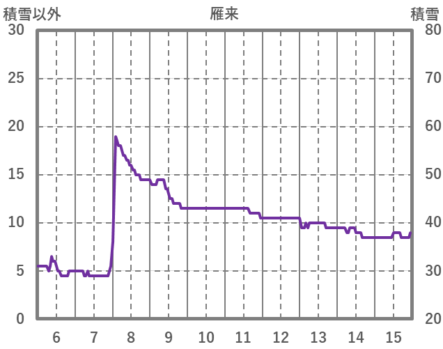 | 日 | 時 | 気温 | 降水 | 風向/風速 | 日照 | 積雪 | 降雪 |