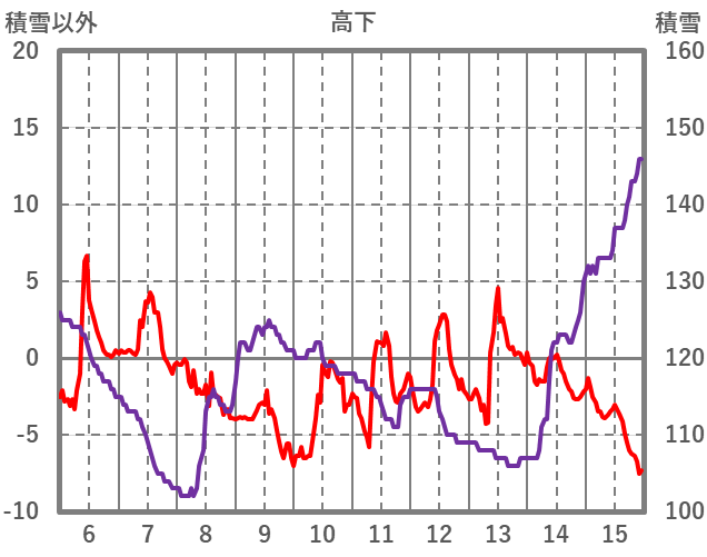 | 日 | 時 | 気温 | 降水 | 風向/風速 | 日照 | 積雪 | 降雪 |
