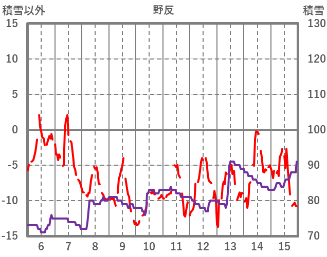 | 日 | 時 | 気温 | 降水 | 風向/風速 | 日照 | 積雪 | 降雪 |