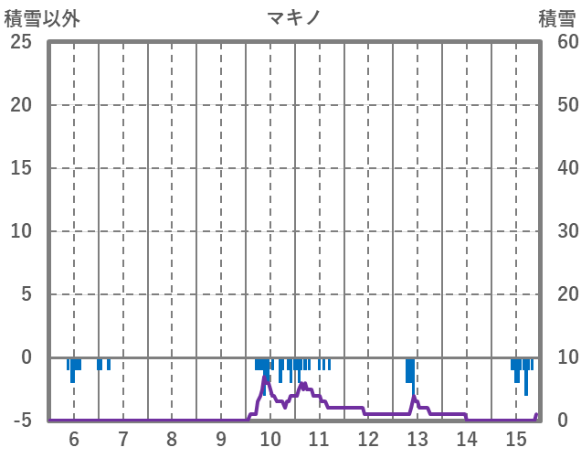 | 日 | 時 | 気温 | 降水 | 風向/風速 | 日照 | 積雪 | 降雪 |