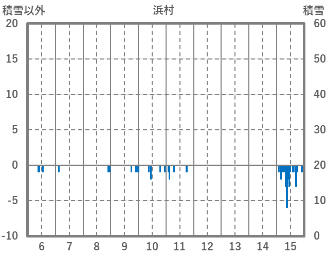| 日 | 時 | 気温 | 降水 | 風向/風速 | 日照 | 積雪 | 降雪 |