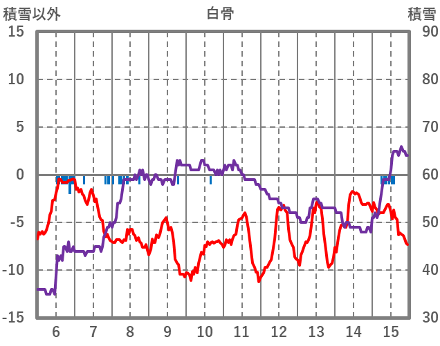 | 日 | 時 | 気温 | 降水 | 風向/風速 | 日照 | 積雪 | 降雪 |