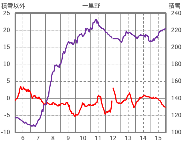 | 日 | 時 | 気温 | 降水 | 風向/風速 | 日照 | 積雪 | 降雪 |