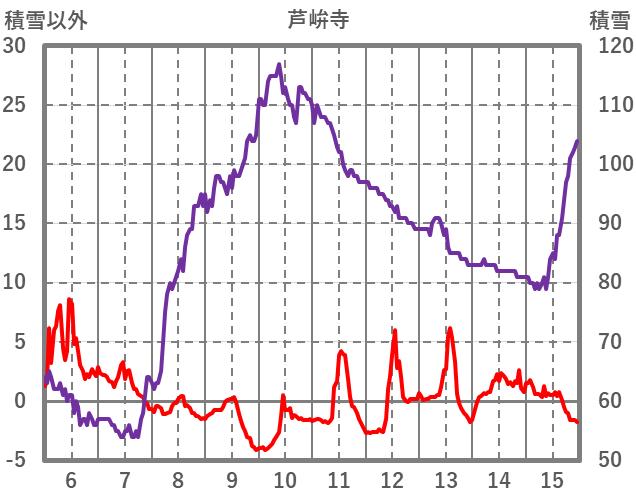 | 日 | 時 | 気温 | 降水 | 風向/風速 | 日照 | 積雪 | 降雪 |