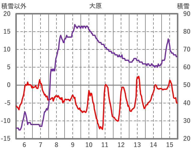 | 日 | 時 | 気温 | 降水 | 風向/風速 | 日照 | 積雪 | 降雪 |