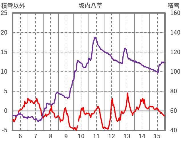 | 日 | 時 | 気温 | 降水 | 風向/風速 | 日照 | 積雪 | 降雪 |