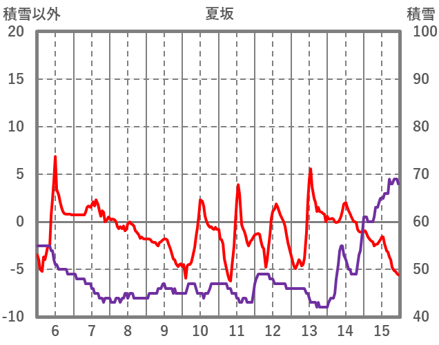 | 日 | 時 | 気温 | 降水 | 風向/風速 | 日照 | 積雪 | 降雪 |