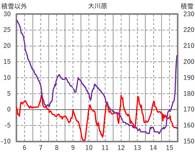 | 日 | 時 | 気温 | 降水 | 風向/風速 | 日照 | 積雪 | 降雪 |