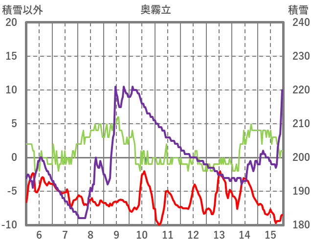 | 日 | 時 | 気温 | 降水 | 風向/風速 | 日照 | 積雪 | 降雪 |
