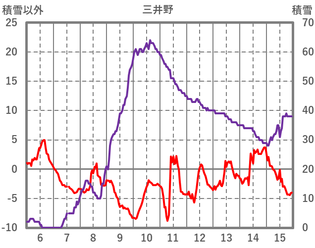 | 日 | 時 | 気温 | 降水 | 風向/風速 | 日照 | 積雪 | 降雪 |