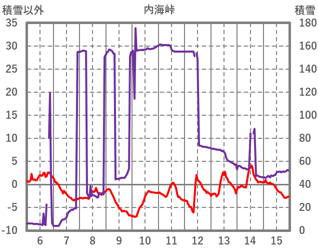 | 日 | 時 | 気温 | 降水 | 風向/風速 | 日照 | 積雪 | 降雪 |