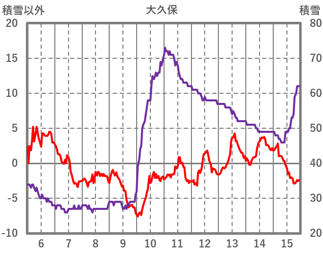 | 日 | 時 | 気温 | 降水 | 風向/風速 | 日照 | 積雪 | 降雪 |