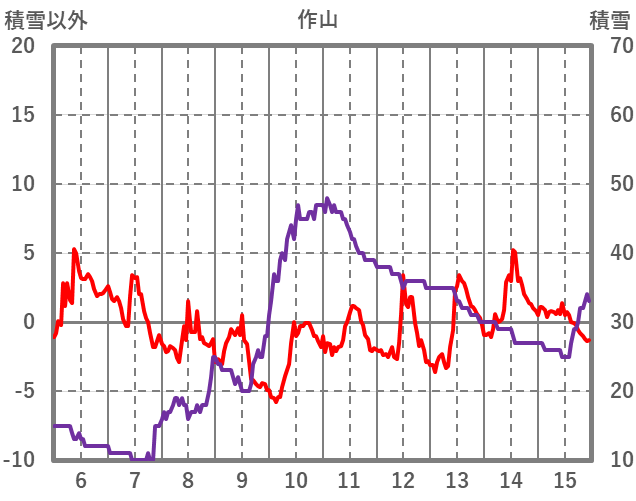 | 日 | 時 | 気温 | 降水 | 風向/風速 | 日照 | 積雪 | 降雪 |