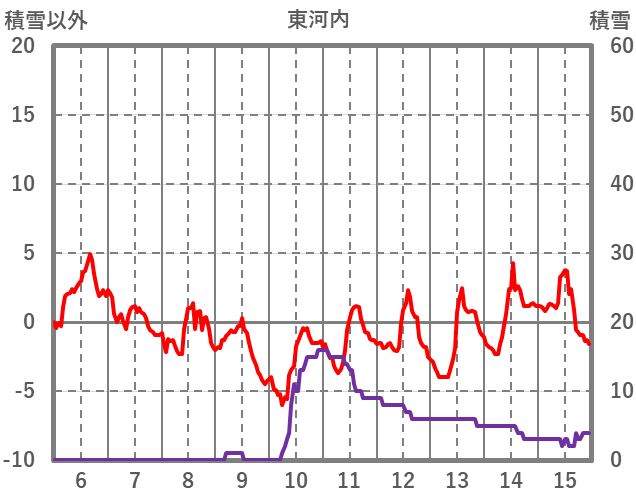 | 日 | 時 | 気温 | 降水 | 風向/風速 | 日照 | 積雪 | 降雪 |
