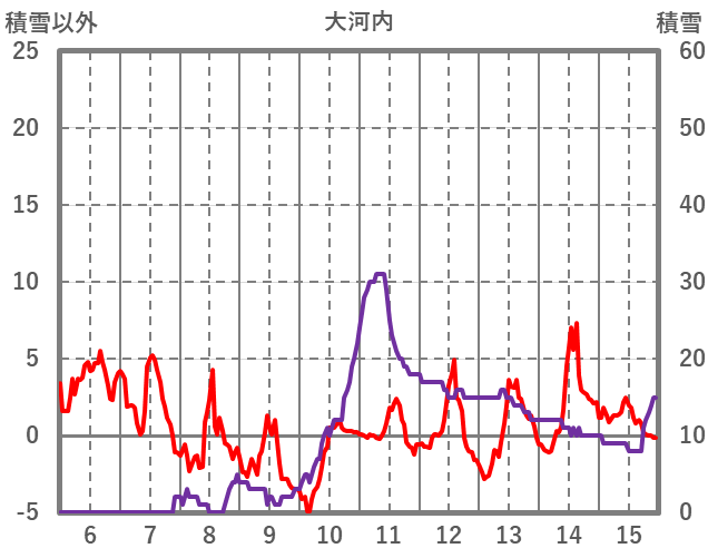 | 日 | 時 | 気温 | 降水 | 風向/風速 | 日照 | 積雪 | 降雪 |
