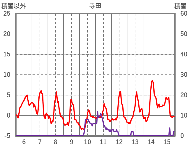 | 日 | 時 | 気温 | 降水 | 風向/風速 | 日照 | 積雪 | 降雪 |